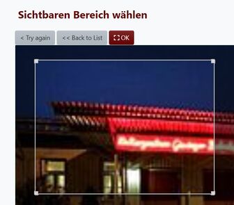 Das hochgeladene Bild wird angezeigt und du kannst festlegen, welcher Bildausschnitt sichtbar sein soll. Dabei wird das Bild auf das einheitliche Bildformat für diese Webseite zugeschnitten.